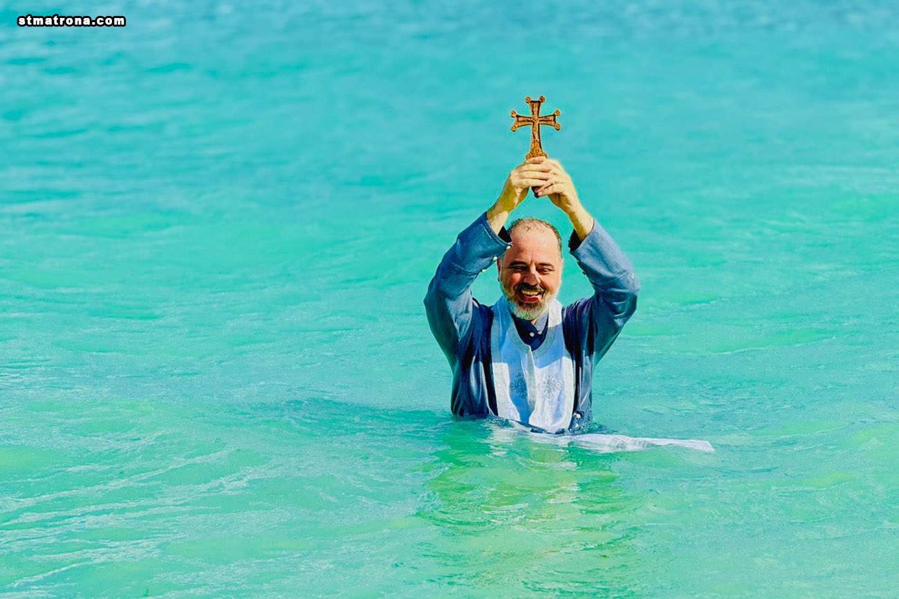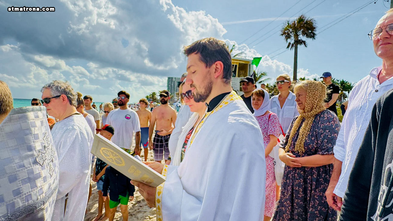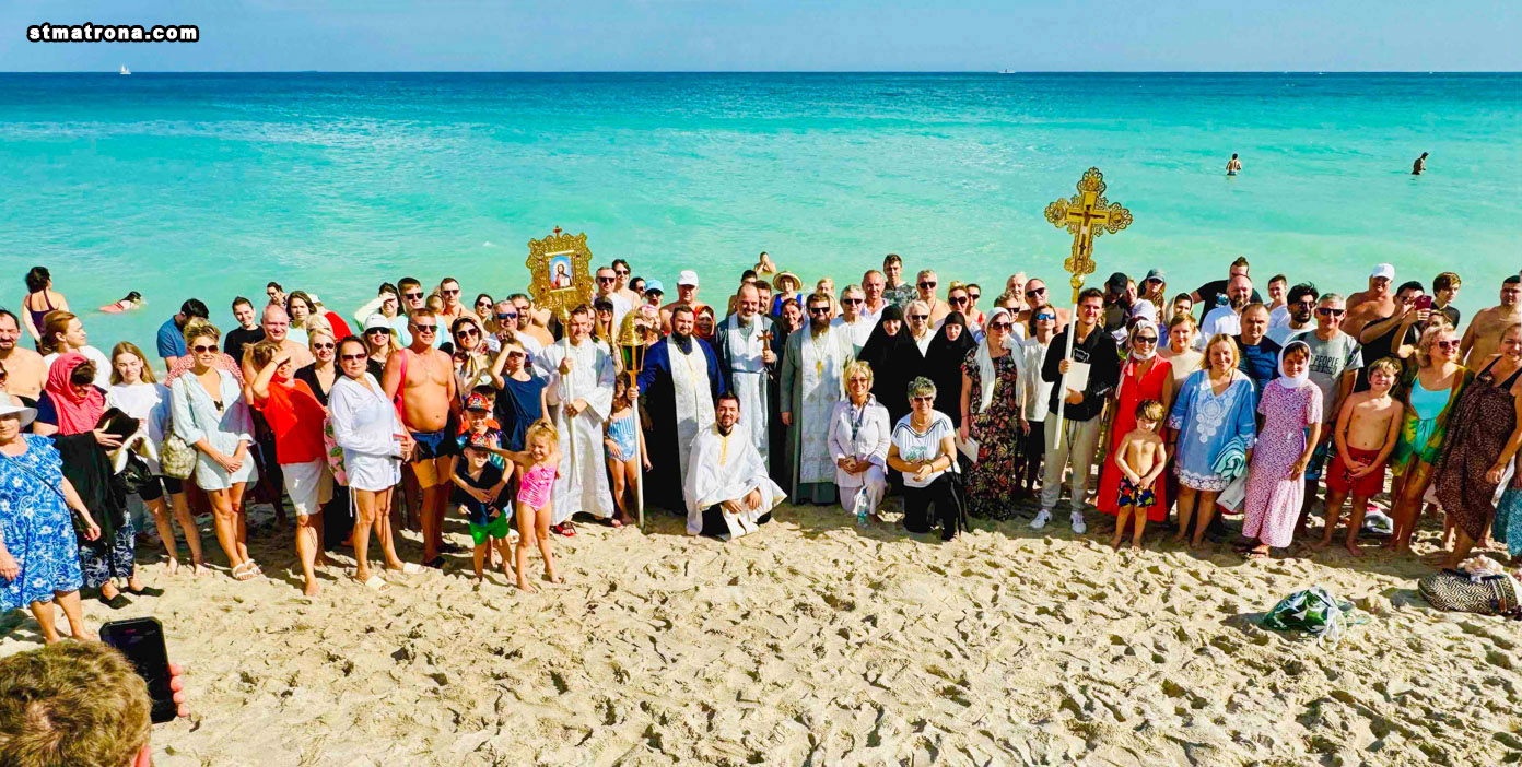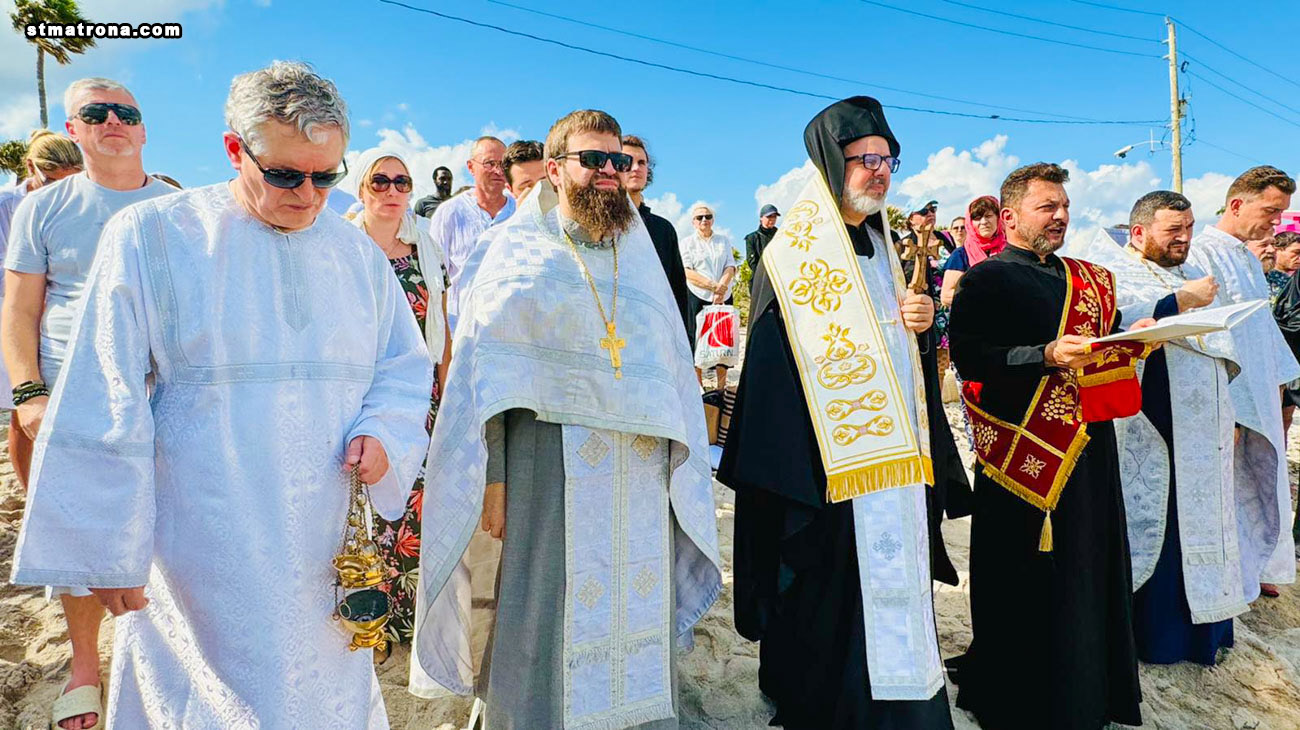 After the Liturgy, following a long-standing custom, the clergy, parishioners of St. Matrona Cathedral, and faithful from the region gathered at the public beach in Dania Beach. This year’s celebration was especially solemn and spiritually uplifting. First, the rite of the Great Blessing of the Waters was presided over by an hierarch—Bishop Athenagoras of Nazianzos. Second, the blessing has now been performed for the tenth consecutive year. Third, the service drew the largest number of people in all that time.