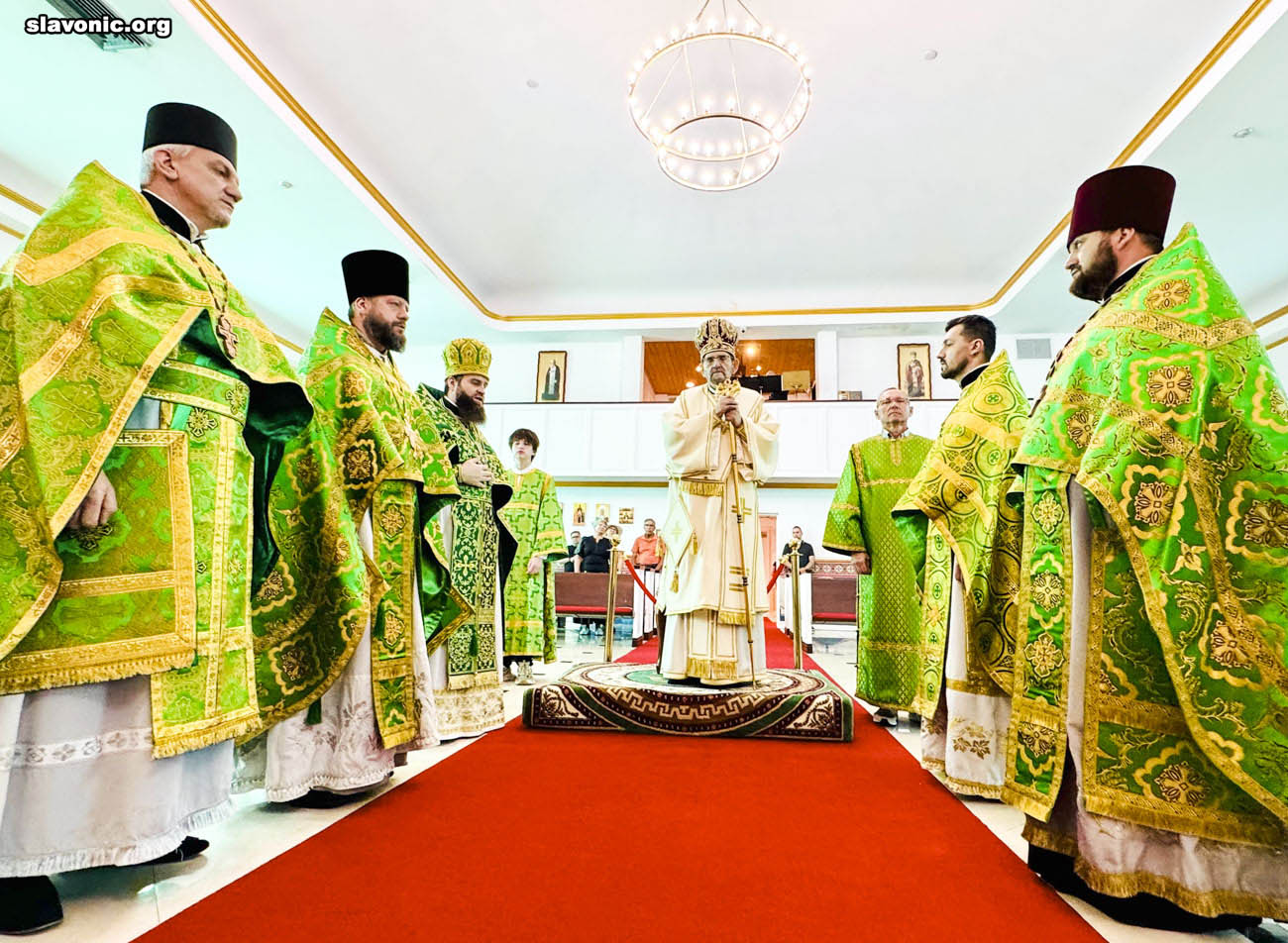 Его Высокопреосвященству сослужили: викарий Славянского Викариатства архимандрит Александр (Беля), избранный епископ Никопольский; настоятель храма иконы Божией Матери «Живоносный Источник» в Хот-Спрингсе (шт. Арканзас) протоиерей Василий Бабич; настоятель храма святителя Николая Чудотворца в Рэд-Бэнке (шт. Нью-Джерси) протоиерей Ростислав Задорожный; клирики собора протоиереи Максим Плисков и Иоанн Зейкан.